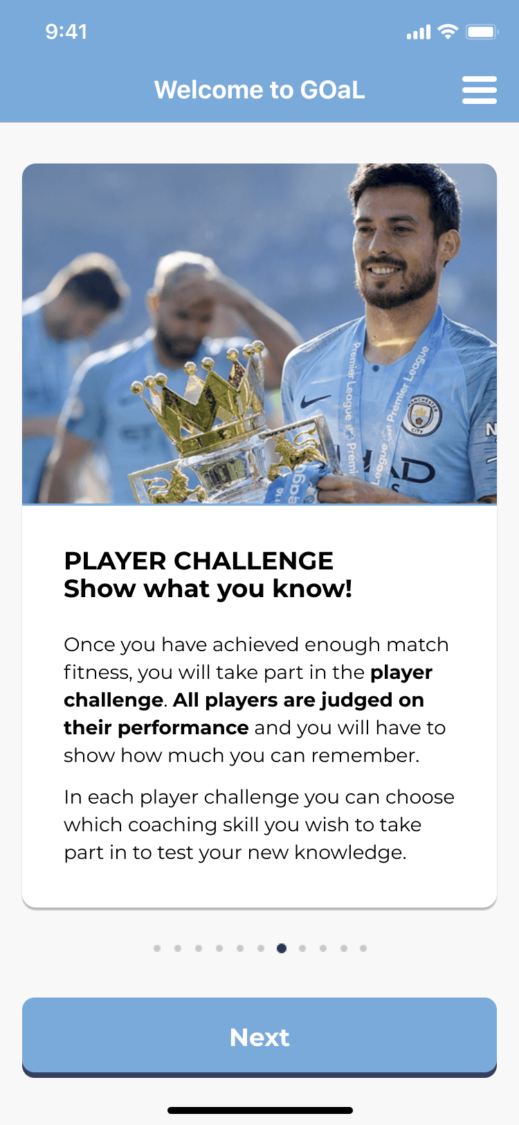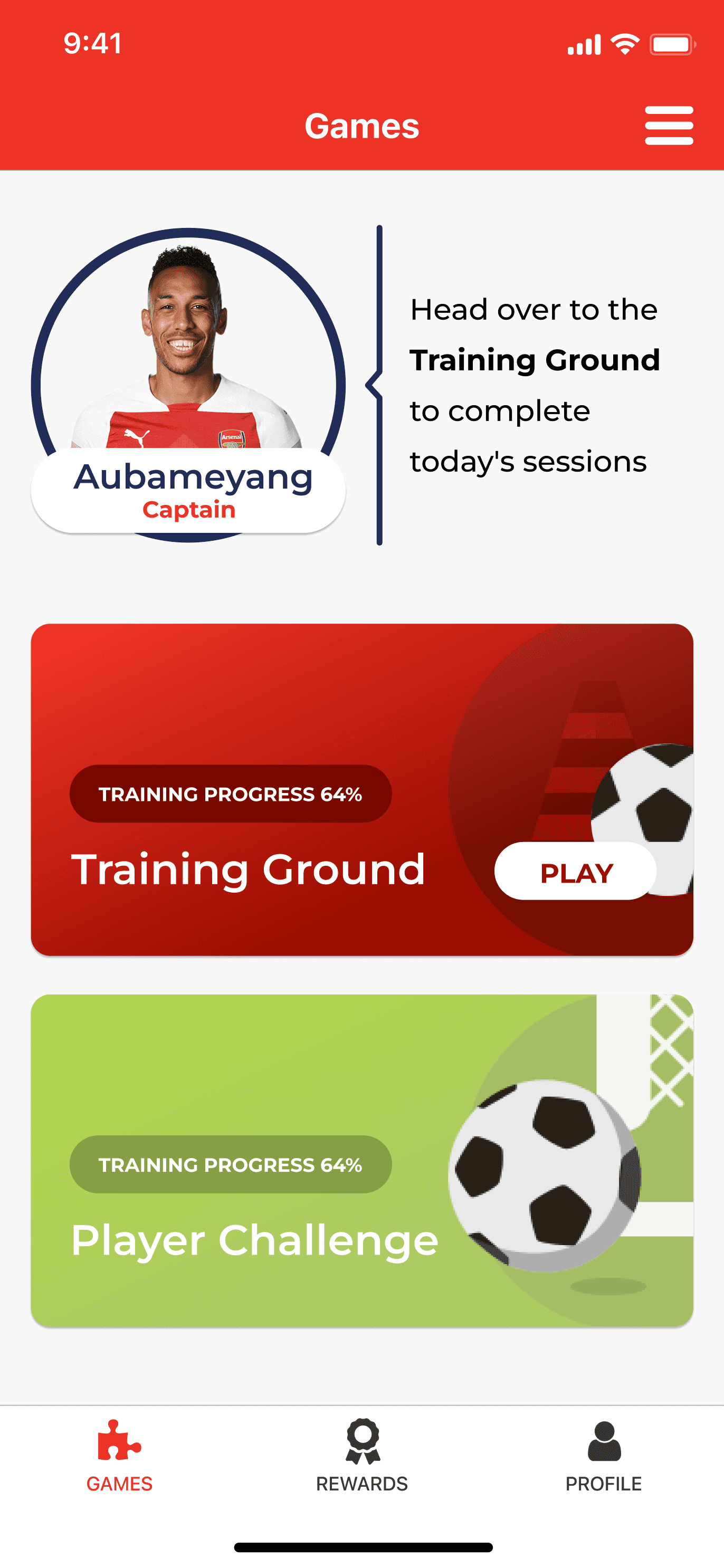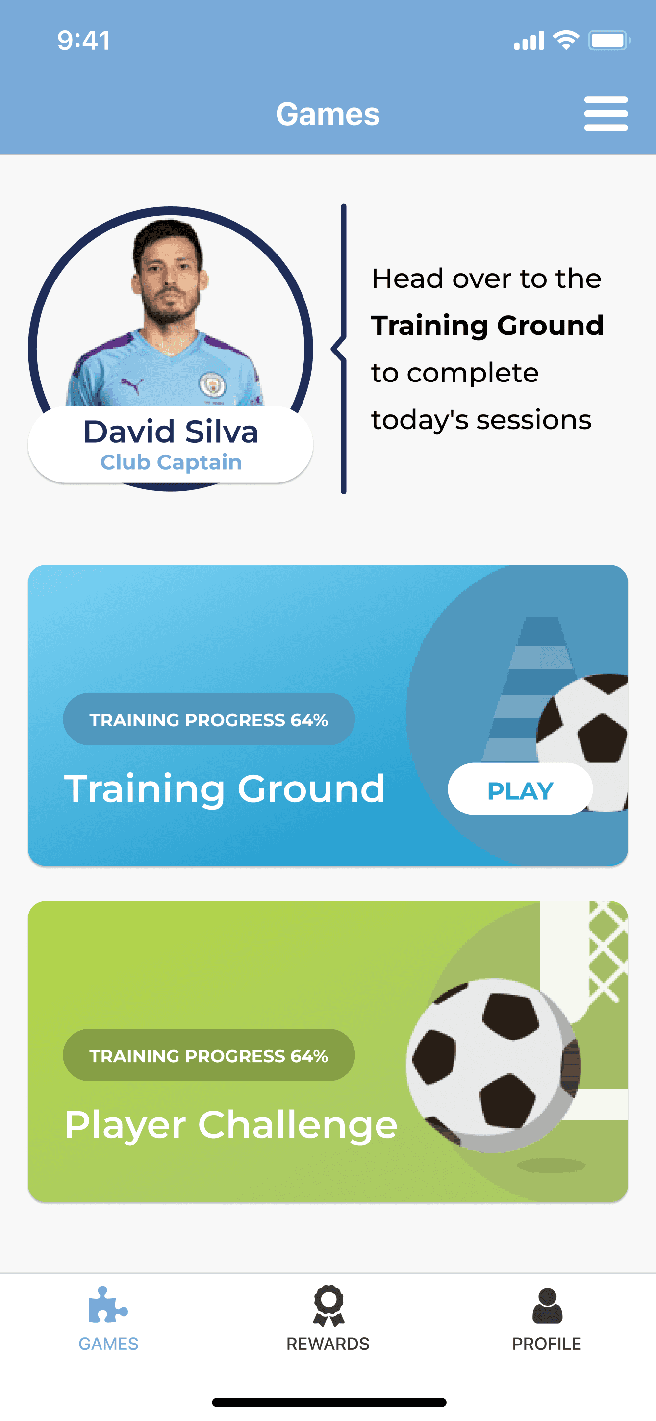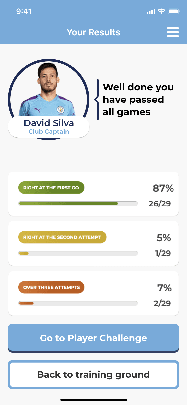 After each training game, a score is added to the Player Challenge, giving every small win a visible consequence.